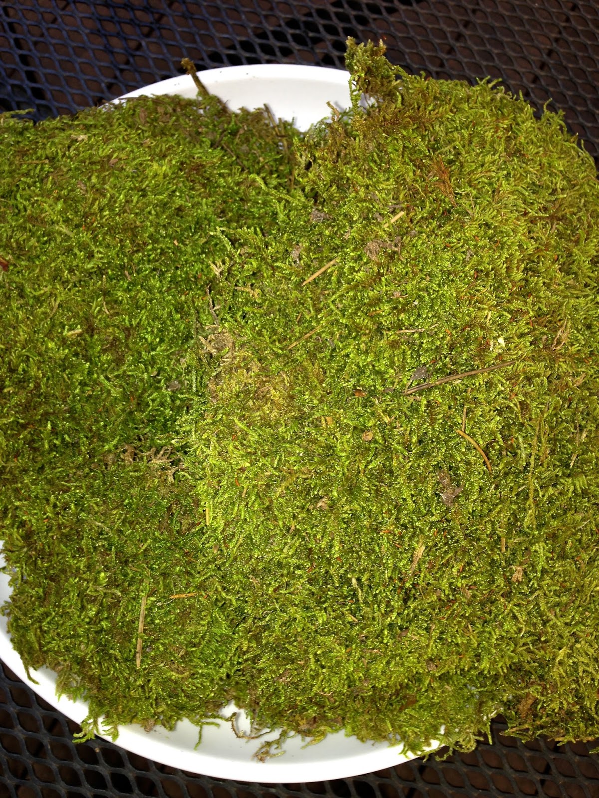 Now begin wrapping the ball with sheet moss gathering it around the plant stem.